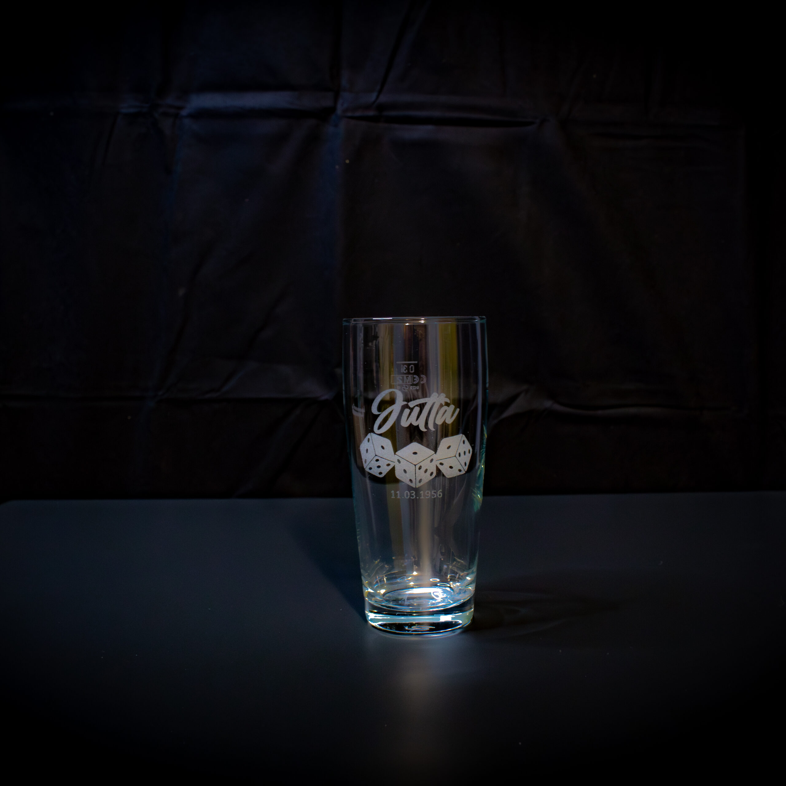Schluss mit Verwechslungen am Tisch. Wir gravieren deinen Namen, dein Logo oder einen kurzen Spruch direkt auf dieses klassische 0,3L Bierglas.